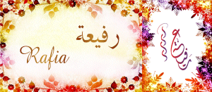 Signification (sens) du prénom Rafî‘a (Rafia) رَفِيعَة: Qui a de la grandeur, éminente et noble.