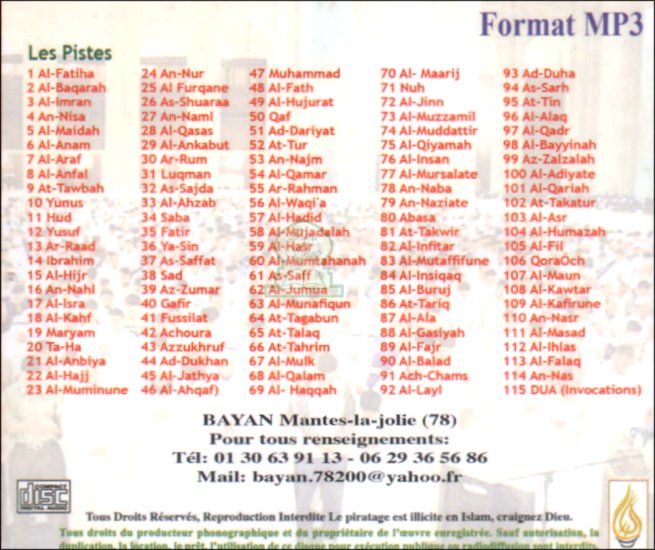 Le Coran complet au format MP3 Par Cheikh Abdellah BASFAR - REF. 12822 (6.00 €)