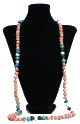 Long collier ethnique artisanal imitation pierres couleur crevette agrémenté de perles et autres pierres colorées - REF. 17505 (22.00 €)