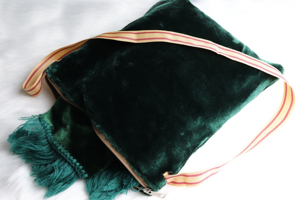 Sacoche en velours très doux avec fermeture zip et bandoulière. Permet de ranger son tapis, ses livres, boussoles ou autre objets et de les transporter facilement pour les voyages. Si vous mettez un tapis ou des vêtements à l'intérieur la sacoche se transforme en petit coussin très doux et pratique pour les voyages...