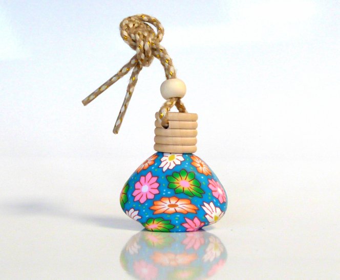 Joli flacon en verre avec bouchon bois pour diffuser le parfum de façon harmonieuse, à suspendre dans la voiture (au rétroviseur par exemple). Peut être utilisé également dans une armoire ou tout autre endroit à parfumer.