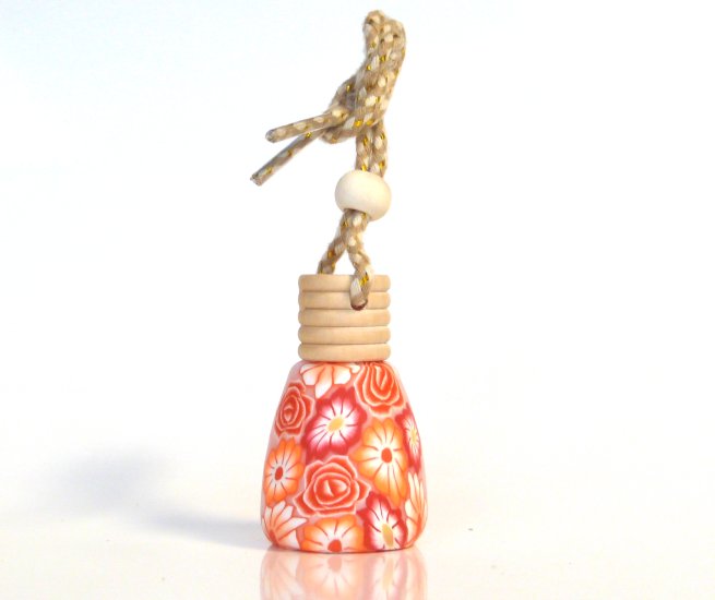Joli flacon en verre avec bouchon bois pour diffuser le parfum de façon harmonieuse, à suspendre dans la voiture (au rétroviseur par exemple). Peut être utilisé également dans une armoire ou tout autre endroit à parfumer.