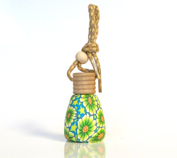 Joli flacon en verre avec bouchon bois pour diffuser le parfum de façon harmonieuse, à suspendre dans la voiture (au rétroviseur par exemple). Peut être utilisé également dans une armoire ou tout autre endroit à parfumer.