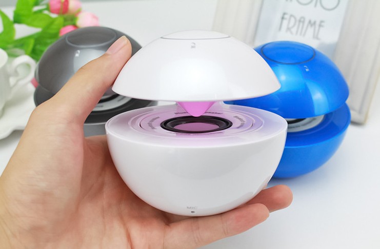 Design ultra moderne et futuriste, avec lumière qui s'allume à l'intérieur au rythme du son, et sa forme sphérique qui lui assure une stabilité maximale grâce à l'effet balourd de sa partie inférieure (revient automatiquement sur sa base par gravité quelque soit la façon dont il est posé) .