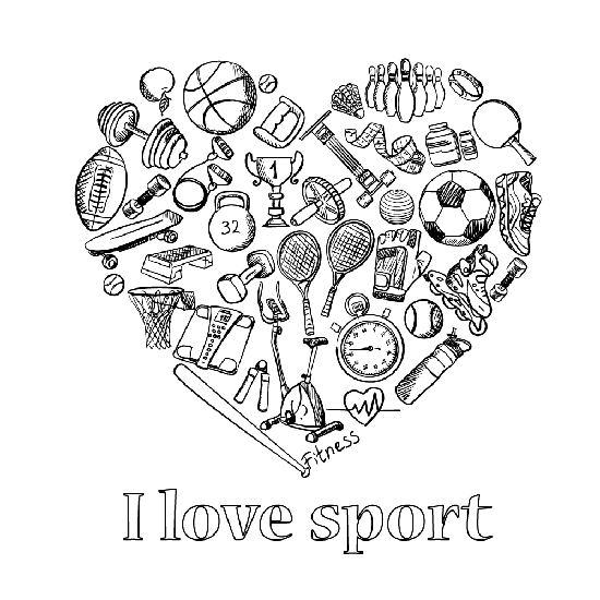 T-Shirt avec logo multi-sport sous forme de coeur recouvrant de nombreuses catégories sportives.