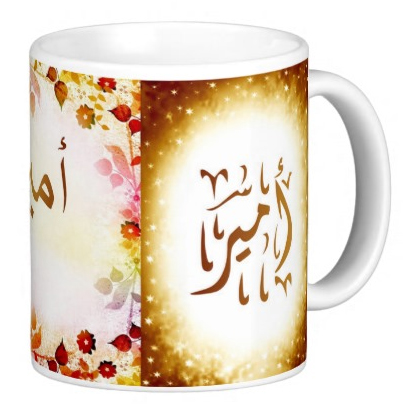 Voir l'ensemble des mugs dédiés au prénoms calligraphiés en arabe (Mugs prénoms arabes et musulmans féminins - Mugs prénoms français)