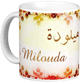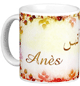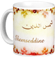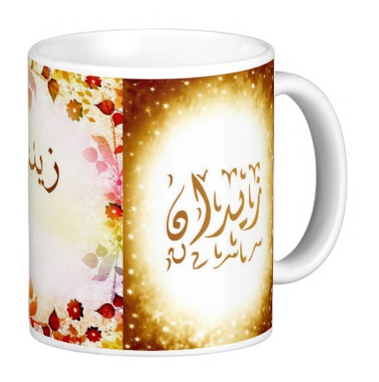 Mug avec le prénom "Zaydane" écrit en français, en arabe (زيدان) et calligraphié de façon artistique en arabe sur la partie droite.