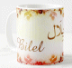 Mug avec le prénom "Hanane" écrit en français, en arabe (حنان) et calligraphié de façon artistique en arabe sur la partie droite.