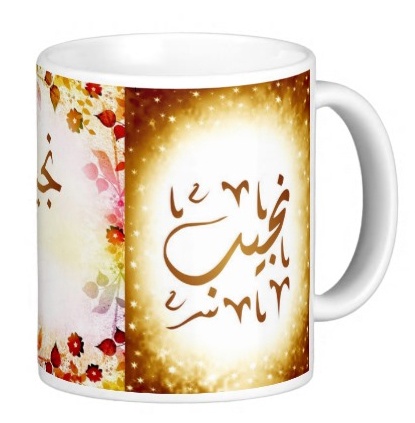 Voir l'ensemble des mugs dédiés au prénoms calligraphiés en arabe (Mugs prénoms arabes et musulmans féminins - Mugs prénoms français)