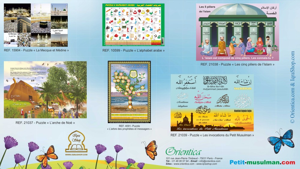 Recevez ces 6 grands puzzles bilingues (français / arabe). Chaque puzzle contient 35 pièces.