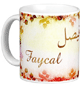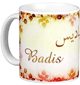 Mug avec le prénom "Abdelah" écrit en français, en arabe (عبد الله) et calligraphié de façon artistique en arabe sur la partie droite.
