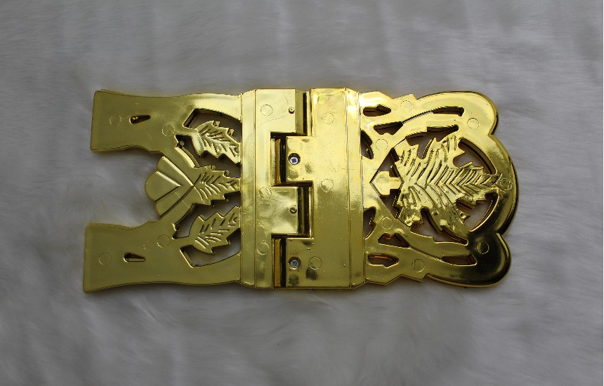 Porte livre léger et lavable en plastique rigide de couleur doré, pliable, avec des motifs de feuilles.