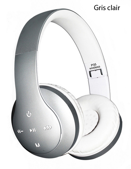 Élégant casque sans fil bluetooth P35 4.2+EDR. Conception sans Fil, excellente qualité sonore, microphone mains libres, stéréo FM radio, mécanisme de pliage pour le ranger et le transporter facilement.