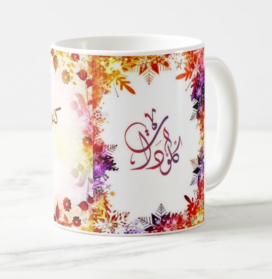 Mug avec le prénom Claudette calligraphié en arabe ainsi que son écriture normale en arabe (كلودات) et en français.
