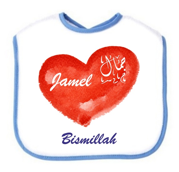 Une idée originale pour une naissance ou une 'aqiqa islamique que celle de ce bavoir personnalisé pour le petit bébé musulman.