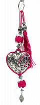 Porte-clés en métal argenté joliment ciselé, constitués de breloques, grand coeur, et de pompon en sabra, avec 8 coloris disponibles... De jolis agréments argentés font de ces porte-clés des pièces originales.