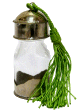 Flacon artisanal en verre orné de métal argenté et de pompon en Sabra - REF. 16464 (5.50 €)