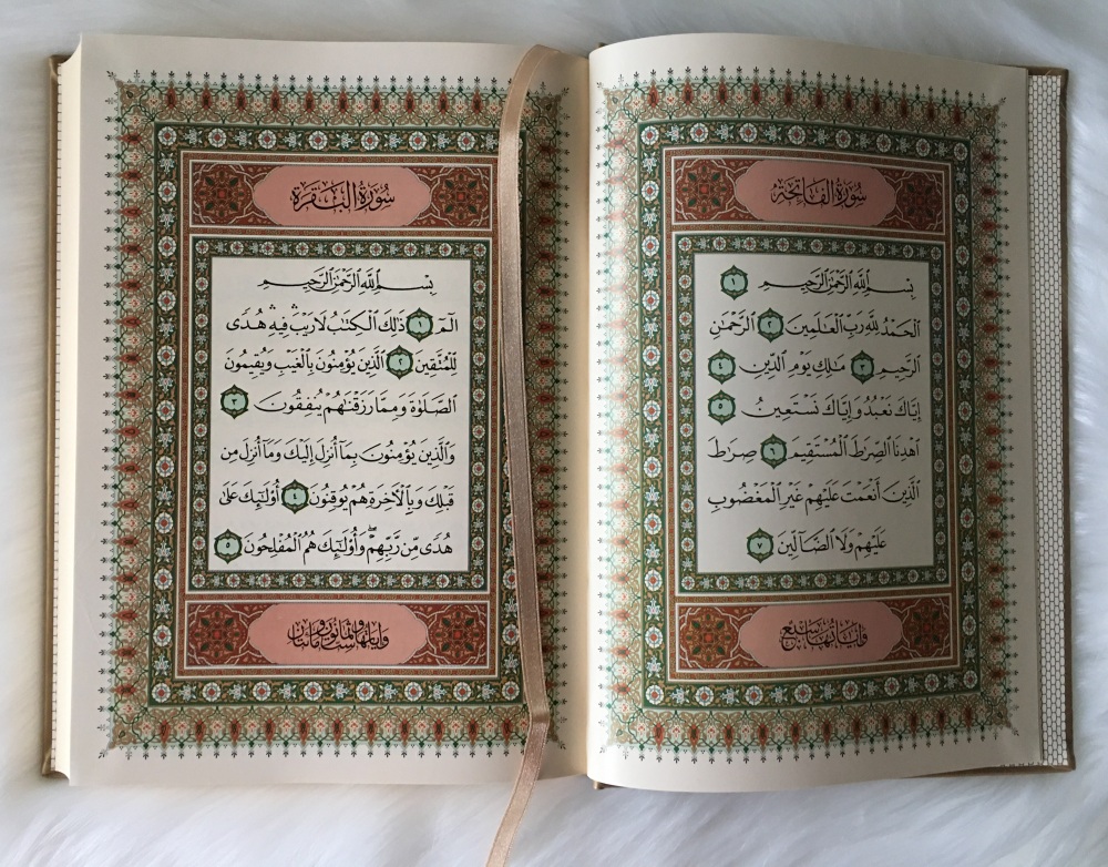 Coran de luxe grand format avec couverture de type cuir dorée de luxe (PU). Très doux au toucher, agréable à manier et ne ramasse pas la poussière.