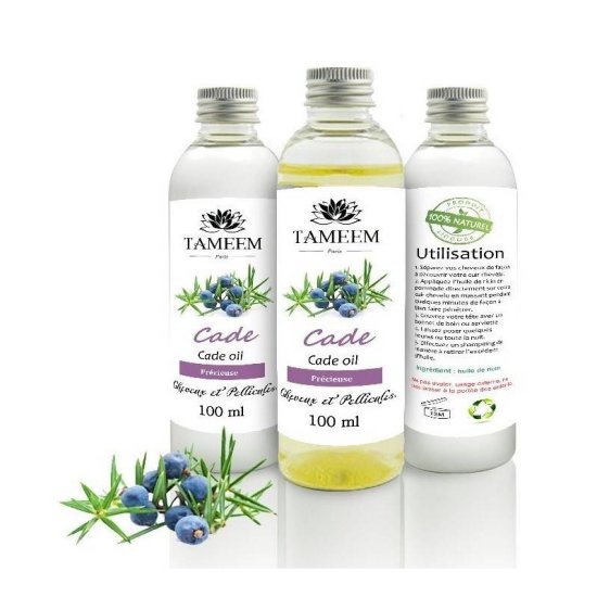 L’huile CADE TAMEEM. En beauté, elle est reconnue pour ses innombrables propriétés sur la peau et les cheveux. Ne contient ni conservateurs, ni produits chimiques.