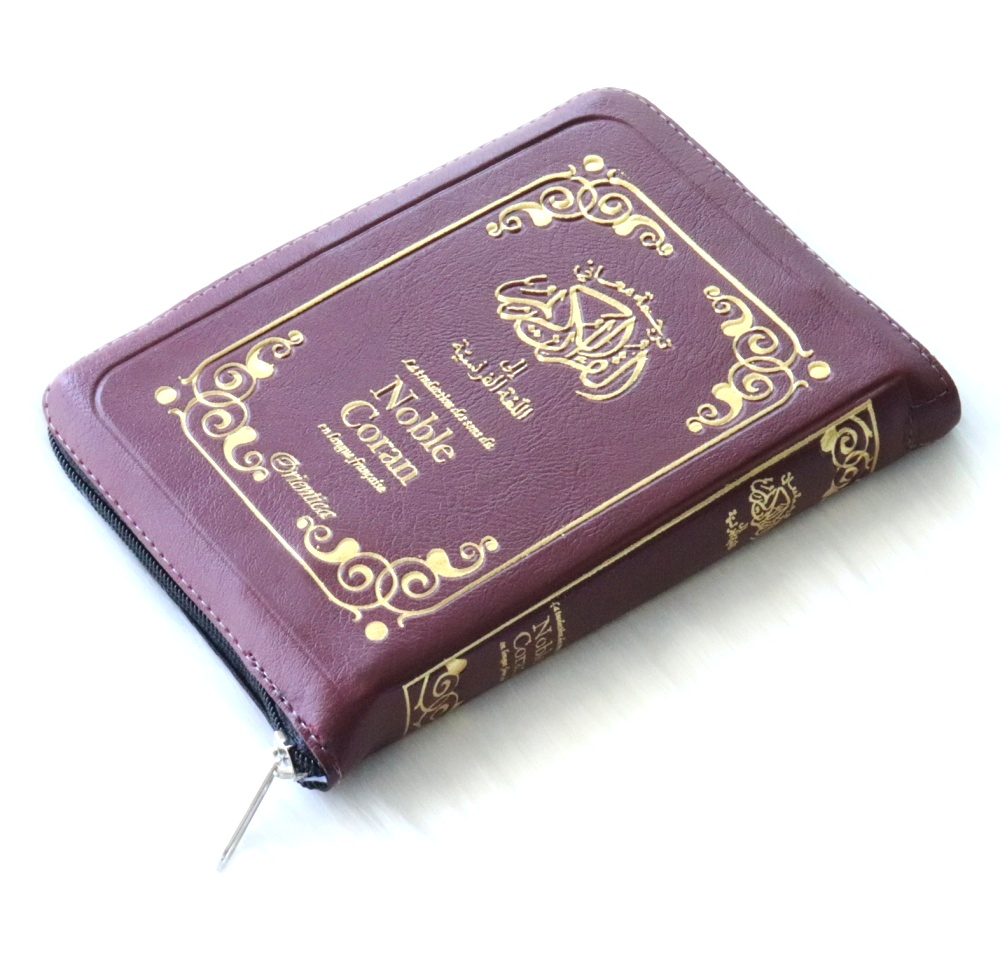 Le Noble Coran en francais - La traduction des sens en langue francaise (Fermeture zip) - Couleur marron-bordeaux