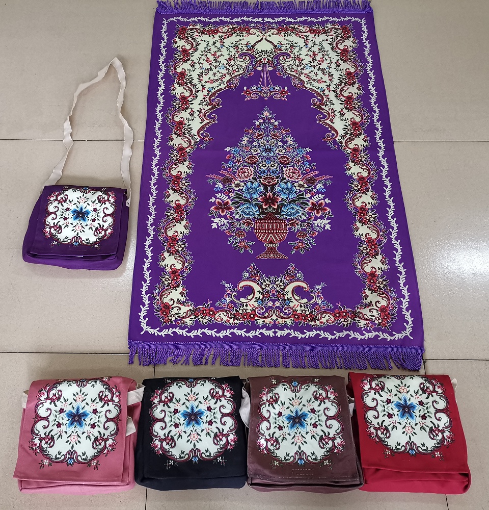 Très beau tapis à transporter dans sa sacoche assortie. Le tapis a des jolis motifs fleuris assortis à la sacoche.