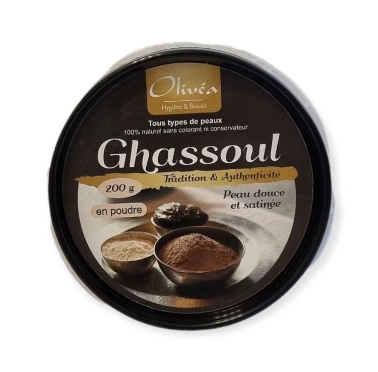 Ghassoul en poudre Olivéa (100% naturel) pour le soin de la peau et des cheveux. nettoie et adoucit. Tous types de peaux.