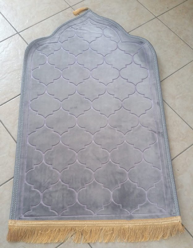 Tapis de priere original en forme de Mihrab avec parties dorees (Sajjada adulte Design Mehrab / Mosquee) - Couleur gris