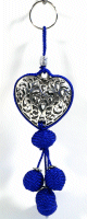 Pendentif / Porte-clés artisanal coeur en métal argenté ciselé et pompon en sabra - Bleu - REF. 29095 (6.90 €)