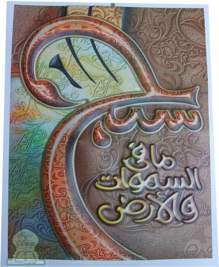 Tableau décoratif en plastique moulé avec reliefs représentant le verset coranique "Tous ceux qui sont dans les cieux et sur la terre glorifient Allah."