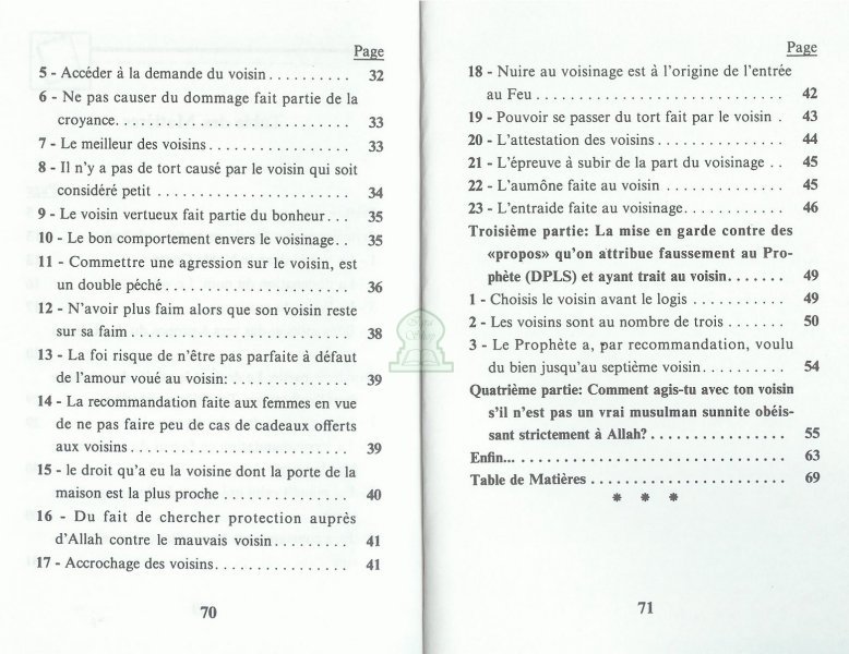 Tirés de la Tradition, des paroles ou des actions authentiques transmises (حقوق الجار) par cheikh 'Ali Hassan 'Ali 'Abdul-Hamid Al-Halabi Al-Athari.