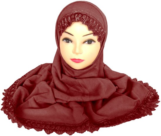 Un ensemble hijab deux pièces de couleur marron avec dentelle.