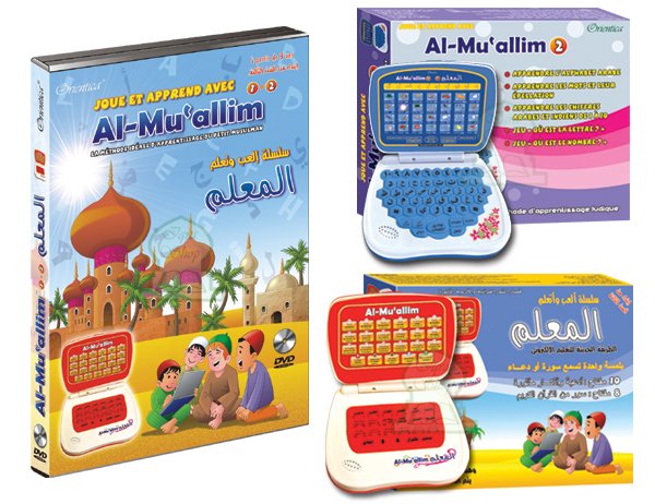 Retrouvez les ordinateurs et tablettes Al-Muallim permettant à l'enfant de découvrir de façon ludique l'alphabet arabe, les invocations et le Coran.