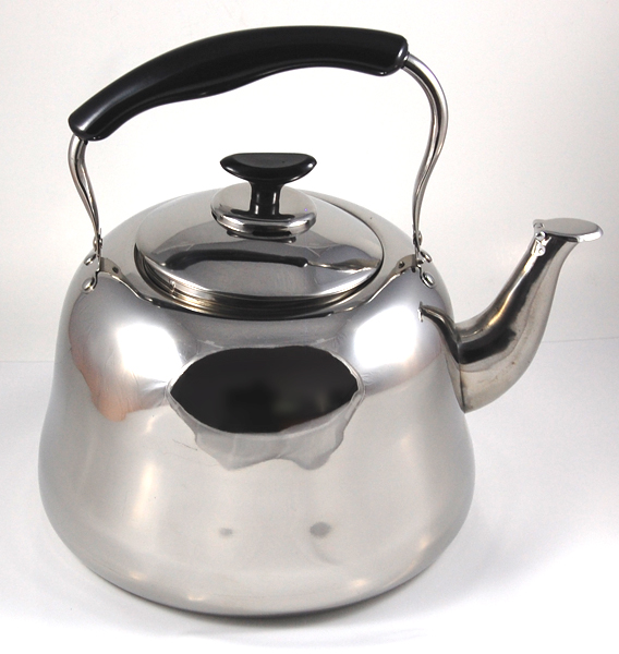 Bouilloire en inox poli de qualité supérieure d'une capacité de 5L avec son couvercle et une poignée recouverte de bakélite pour le prendre lorsqu'il est chaud sans se bruler, et une languette rabattable au bout du bec verseur afin de préserver la chaleur du contenu. Ce bouilloire est utilisable sur des plaques électriques, plaques halogène et sur cuisinière à gaz.
