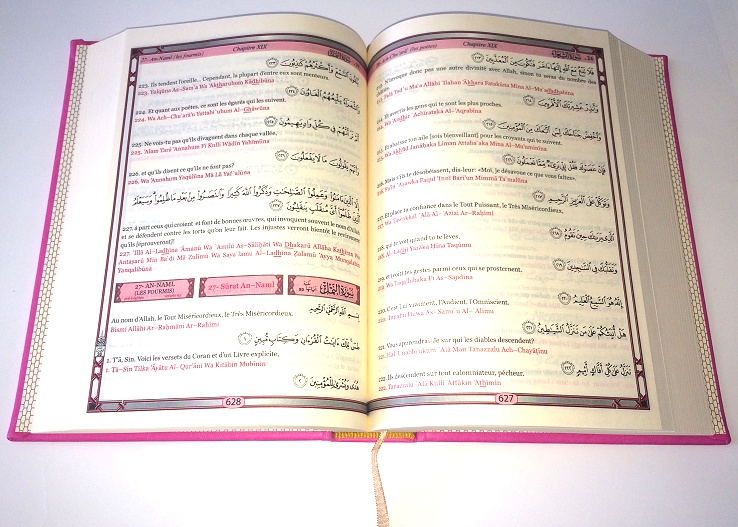Le Coran couverture rigide de luxe couverture en daim dorée (14 x 20 cm) - Couleur Rose Fuchsia - REF. 38560 (14.90 €) - En Promotion à 12.90 €