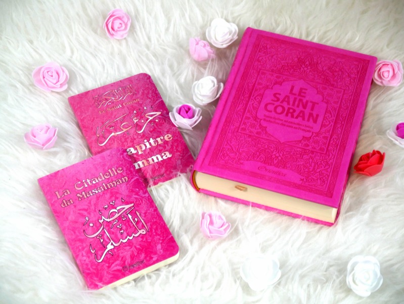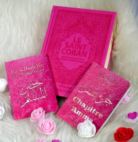 Coffret cadeau islamique rose pour femme musulmane : Le Saint Coran, Chapitre Amma et La citadelle du musulman