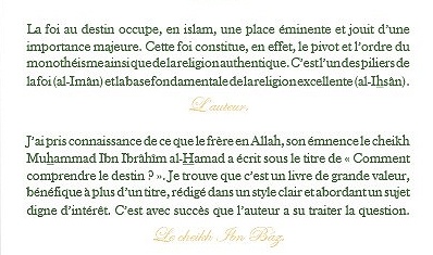 La foi au destin occupe, en islam, une place éminente et jouit d'une importance majeure, Cette foi constitue, en effet, le pivot et l'ordre du monothéisme ainsi que la religion authentique. C'est l'un des piliers de la foi (al-Imân) et la base fondamentale de la religion excellente (al-Ihsân).Le plan de la recherche comporte une introduction, trois parties et une conclusion, comme suit:L'introduction : elle porte sur une question liée au statut juridique de la discussion sur le destin.Partie 1 : La vraie croyance au destin. Elle comporte deux chapitres: