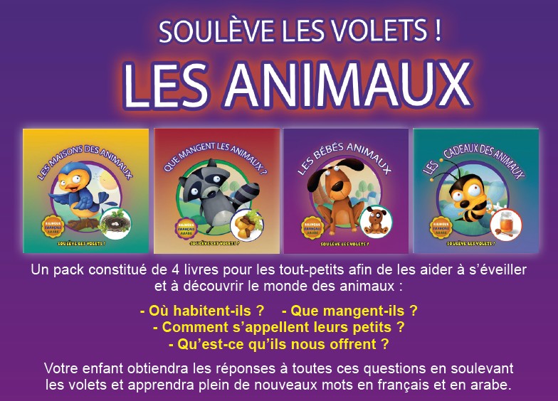 Profitez de cette offre de réduction : "Les animaux - Soulève les volets ! Pack de 4 livres bilingues (français / arabe)" à prix promotionnel de 8.90 € au lieu de 12.00 € ! Retrouvez toujours les meilleurs offres et des centaines de réductions...