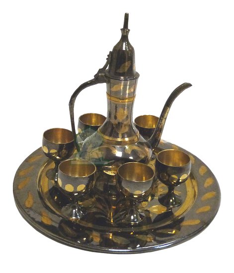 Mini service décoratif en cuivre sculpté à la main. Une vraie œuvre d'art artisanale.