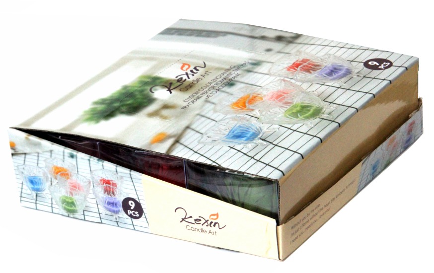 Pack 9 bougies parfumées sous forme de fleur dans un joli récipient en verre (Différentes couleurs et senteurs ( Orange, Vert, Bleu, blanc).