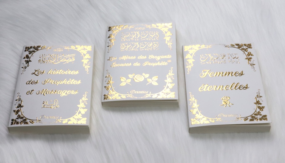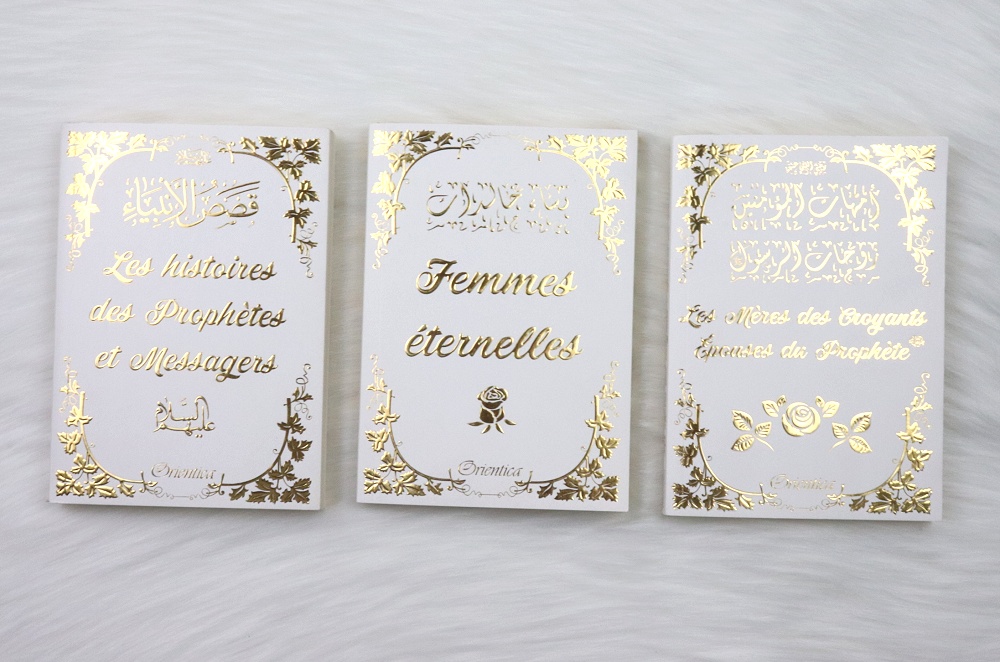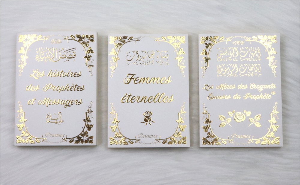 Pack cadeau de trois livres assortis avec couverture blanche dorée :