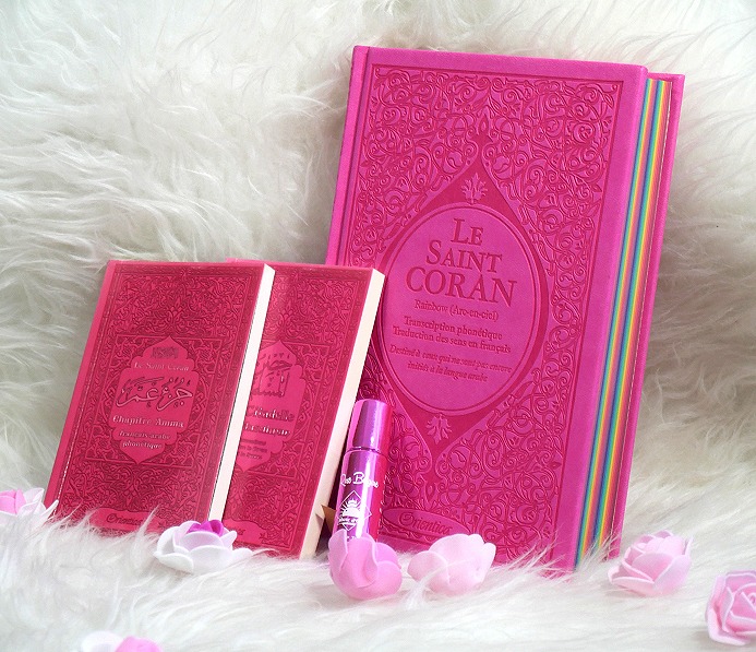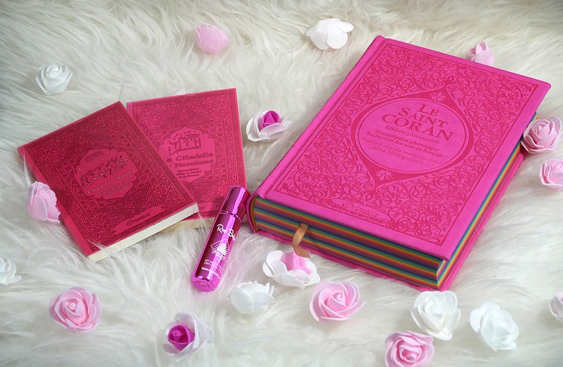 Pack Cadeau Rose à offrir pour femme musulmane : Le Saint Coran Rainbow, Chapitre Amma, La citadelle du musulman et parfum Musc Rose Bulgare Deco & Cadeau Coup de coeur