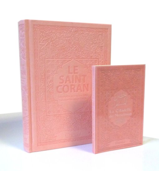 Pack Le Saint Coran et la Citadelle du Musulman (français / arabe / phonétique) couleur rose pale - REF. 23769 (27.50 €)