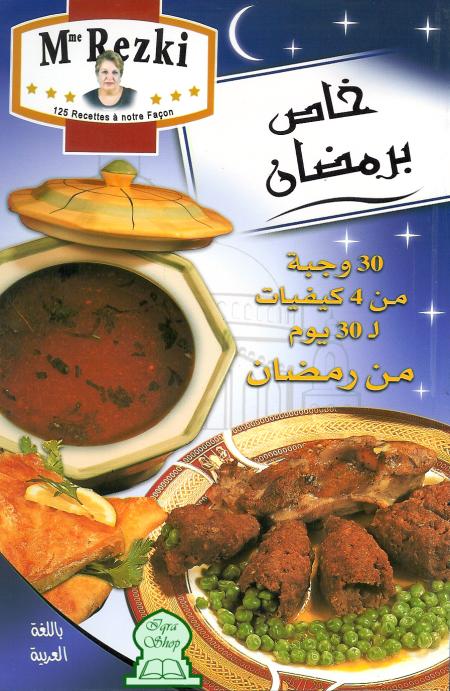 Ce livre de recettes de Mme. Rezki contient trente menus de quatre recettes pour les trente jours de Ramadan.