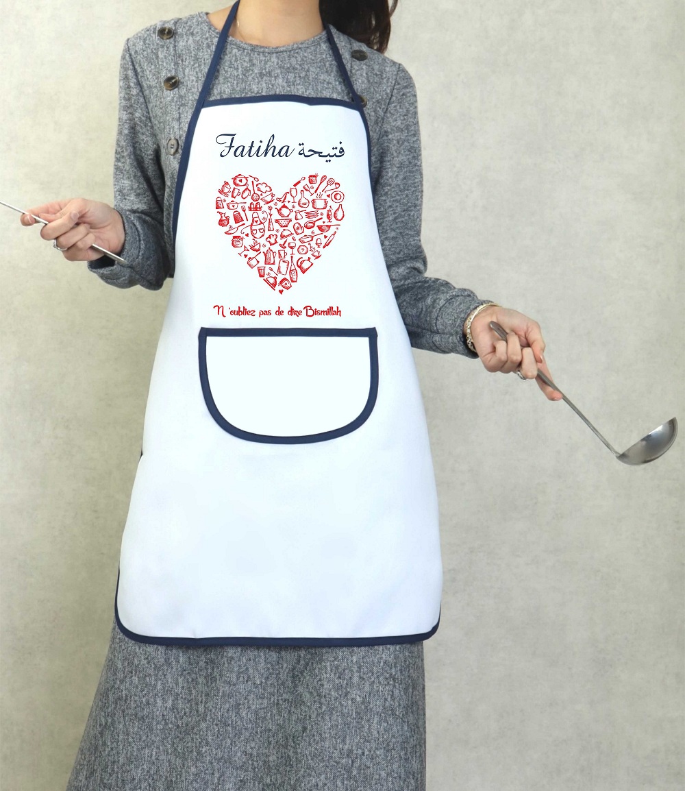 Un tablier personnalisé selon votre goût vous protégera de toute sorte de tâches. Le tablier est lessivable en machine à 40° ; les couleurs ne déteignent pas avec le temps.